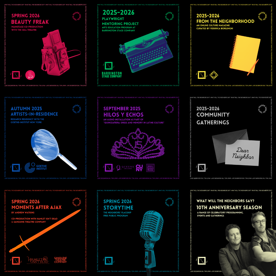 This season, we will be producing a Mainstage production as well as a co-production of a new work, launching a digital magazine, and working on a new collaboration with Queens College. Across our tenth anniversary season, we will also continue our education work, present a special edition of our community program, storytime, as well as a to-be-announced tenth anniversary celebration, and other free public facing events.